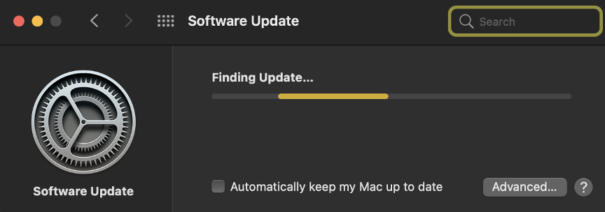 Pressing the yellow button also yields the Software Update pane. This time with a reassuring "Finding Update" message. However, again, nothing appears, the finding process stays in a loop. So bad luck.